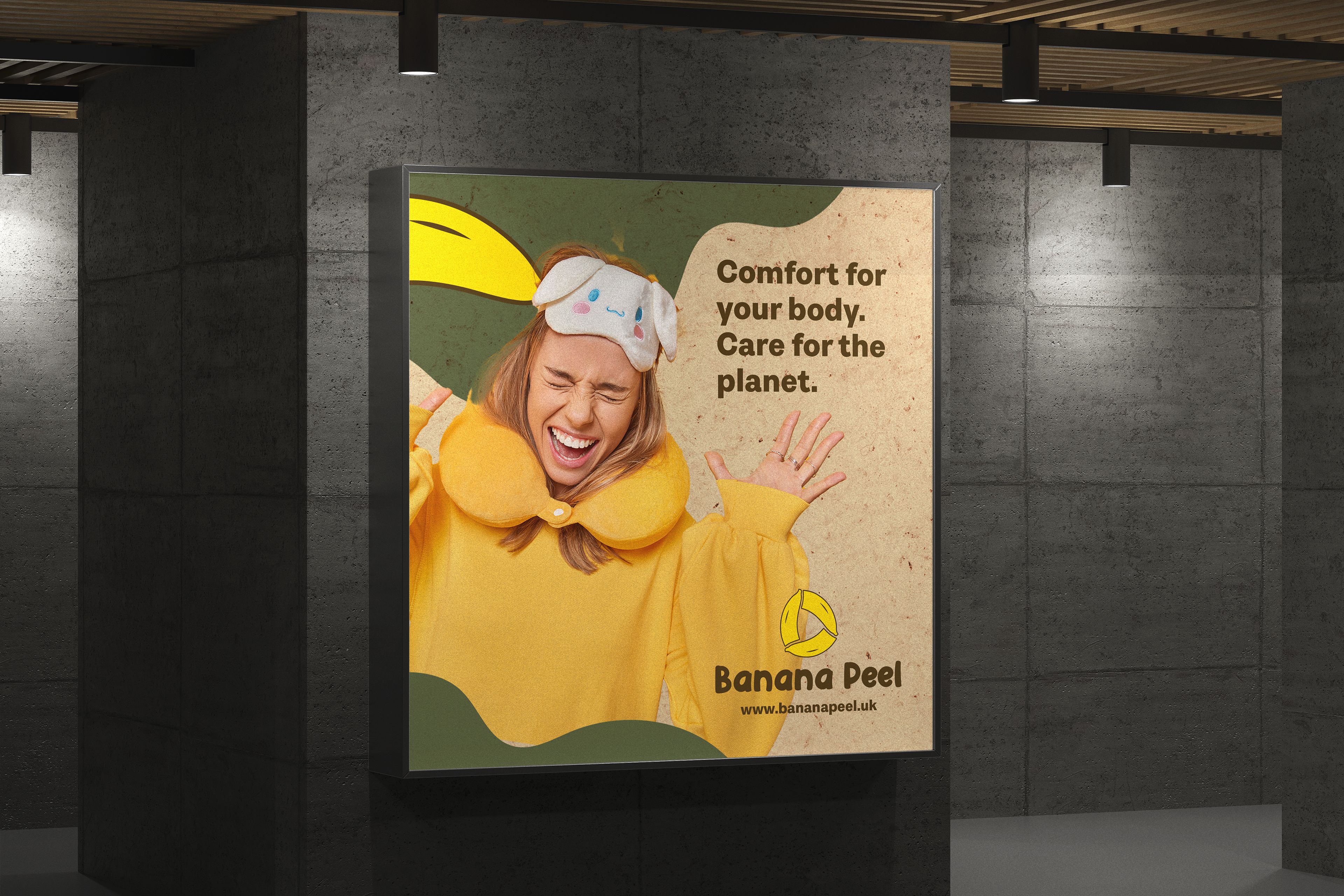 Atuei como diretora de arte e designer de marca — cuidando do naming (Banana Peel), da concepção de identidade visual, curadoria estética, paleta de cores, tipografia, design do logotipo e demais elementos visuais da marca.