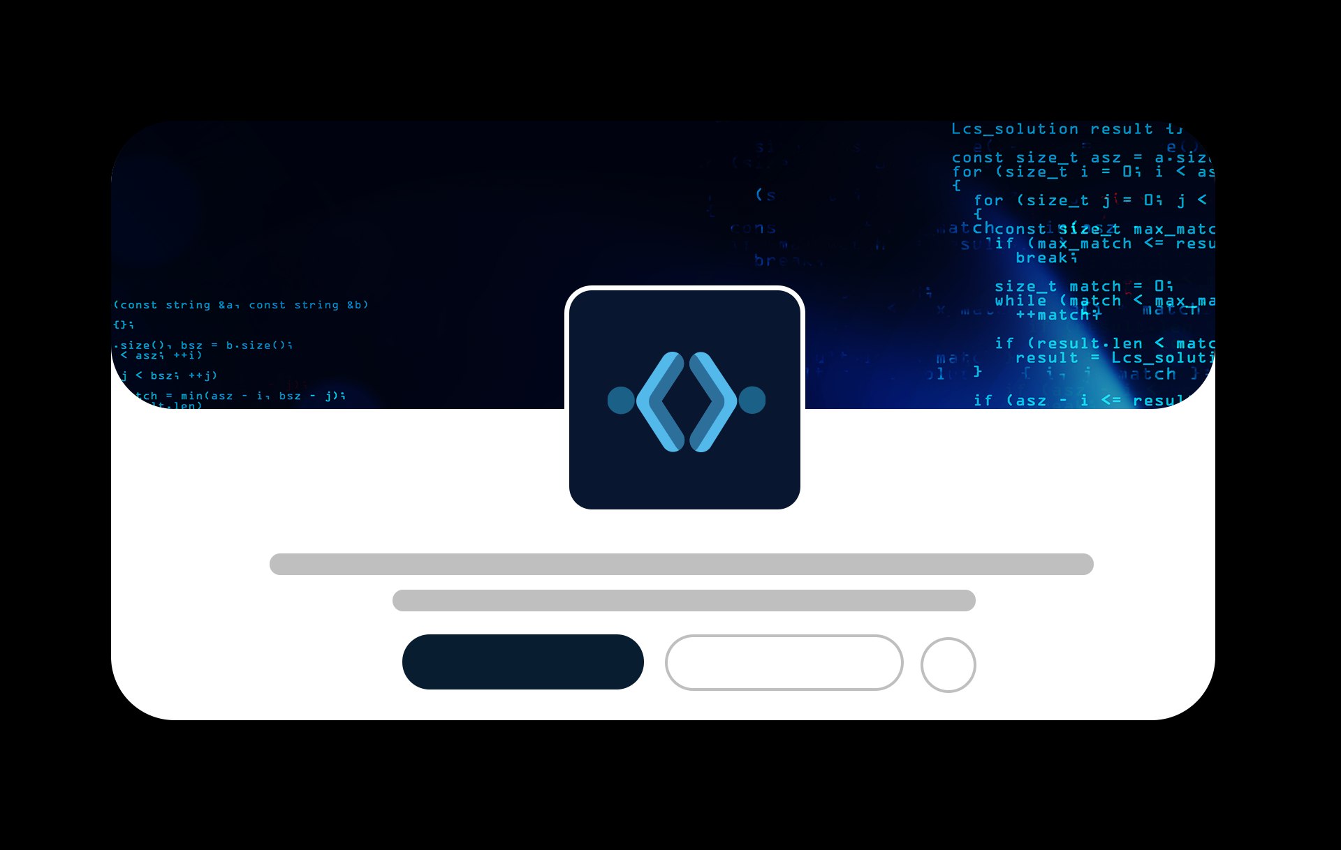 The forms were designed with a sense of movement and continuity, creating a perception of constant flow, much like the development process itself, which evolves through cycles, testing, and refinement. The two circles integrated into the composition reinforce the idea of exchange between individuals, representing minds connecting to build solutions together. It goes beyond simply writing code, it reflects thinking, reviewing, and growing collectively.