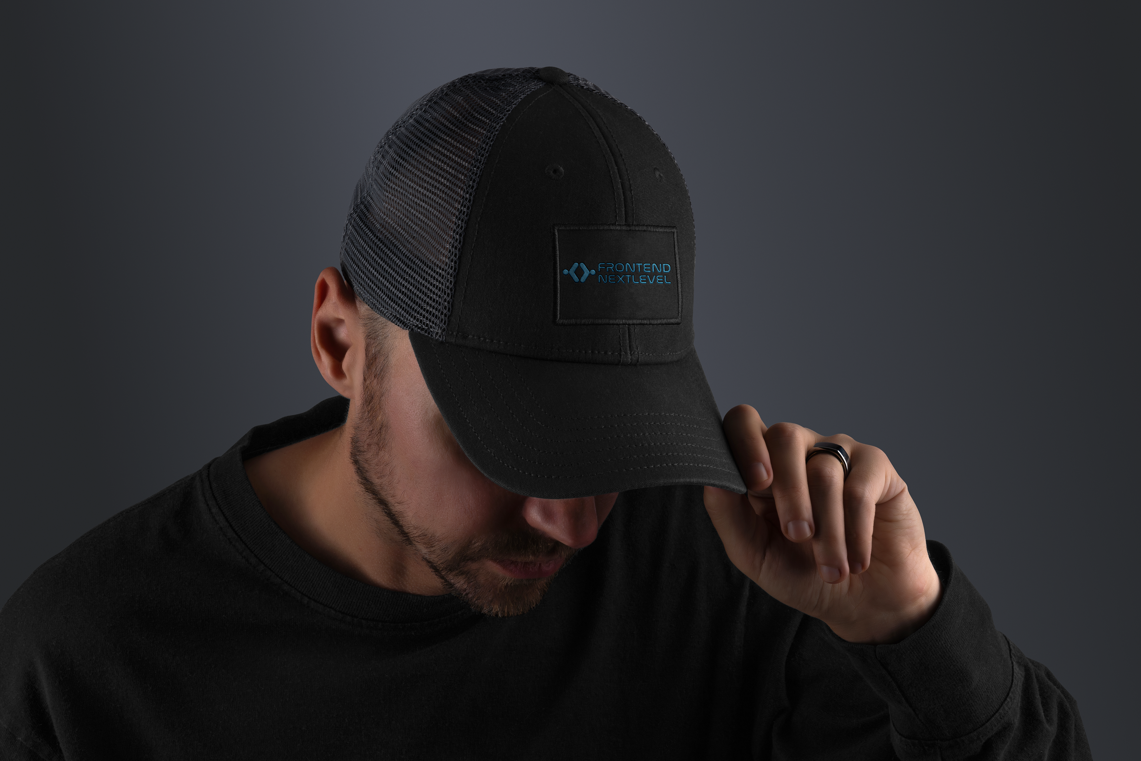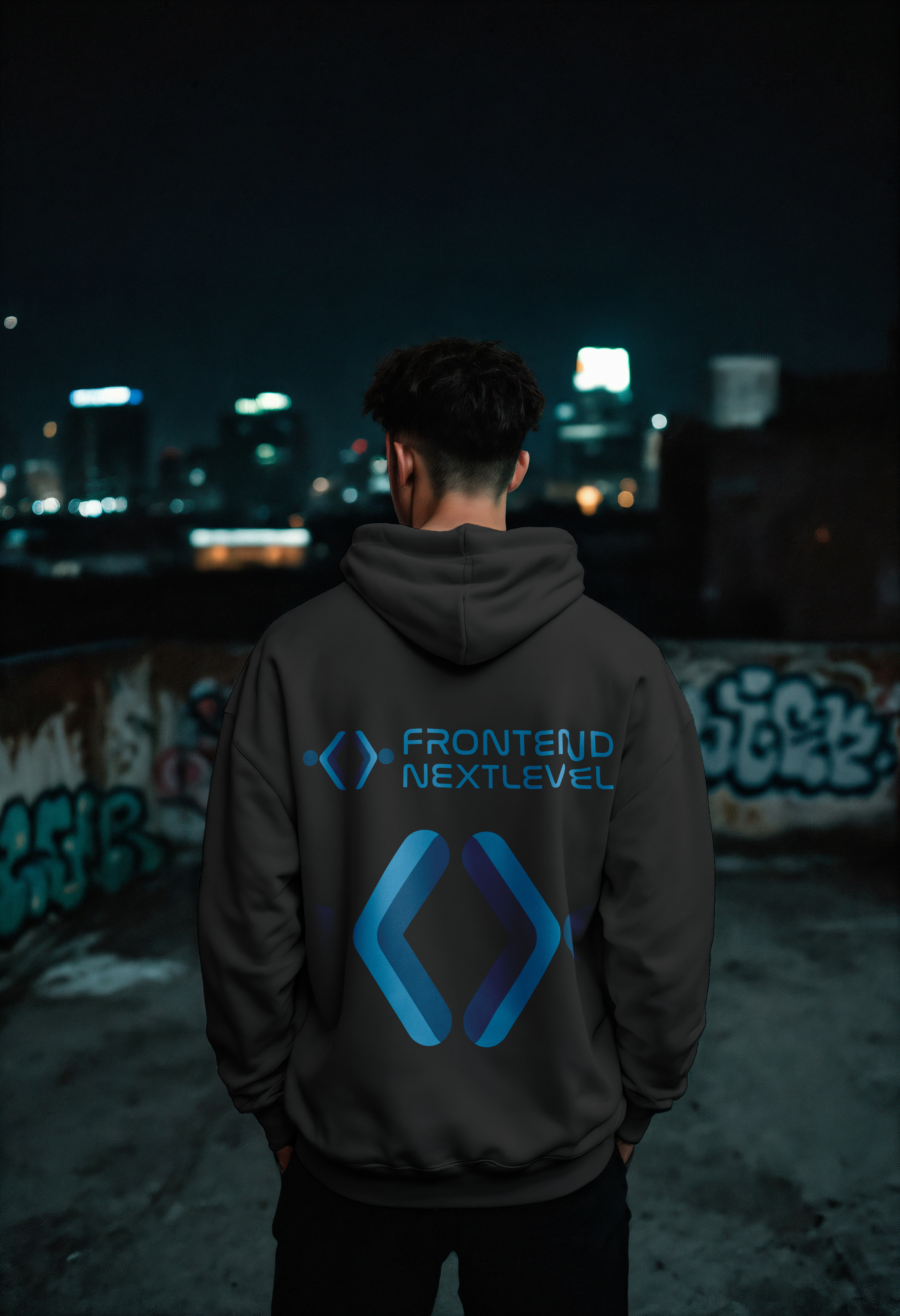 The visual identity project for Frontend Nextlevel emerges from the intersection of logic and collaboration, two essential pillars in contemporary front-end development. The logo construction is based on a symbol that directly references the programming universe, using arrow shapes inspired by code syntax while simultaneously suggesting a human gesture, resembling two arms meeting in a handshake. This duality captures the essence of the project, where technology and interaction are inseparable.