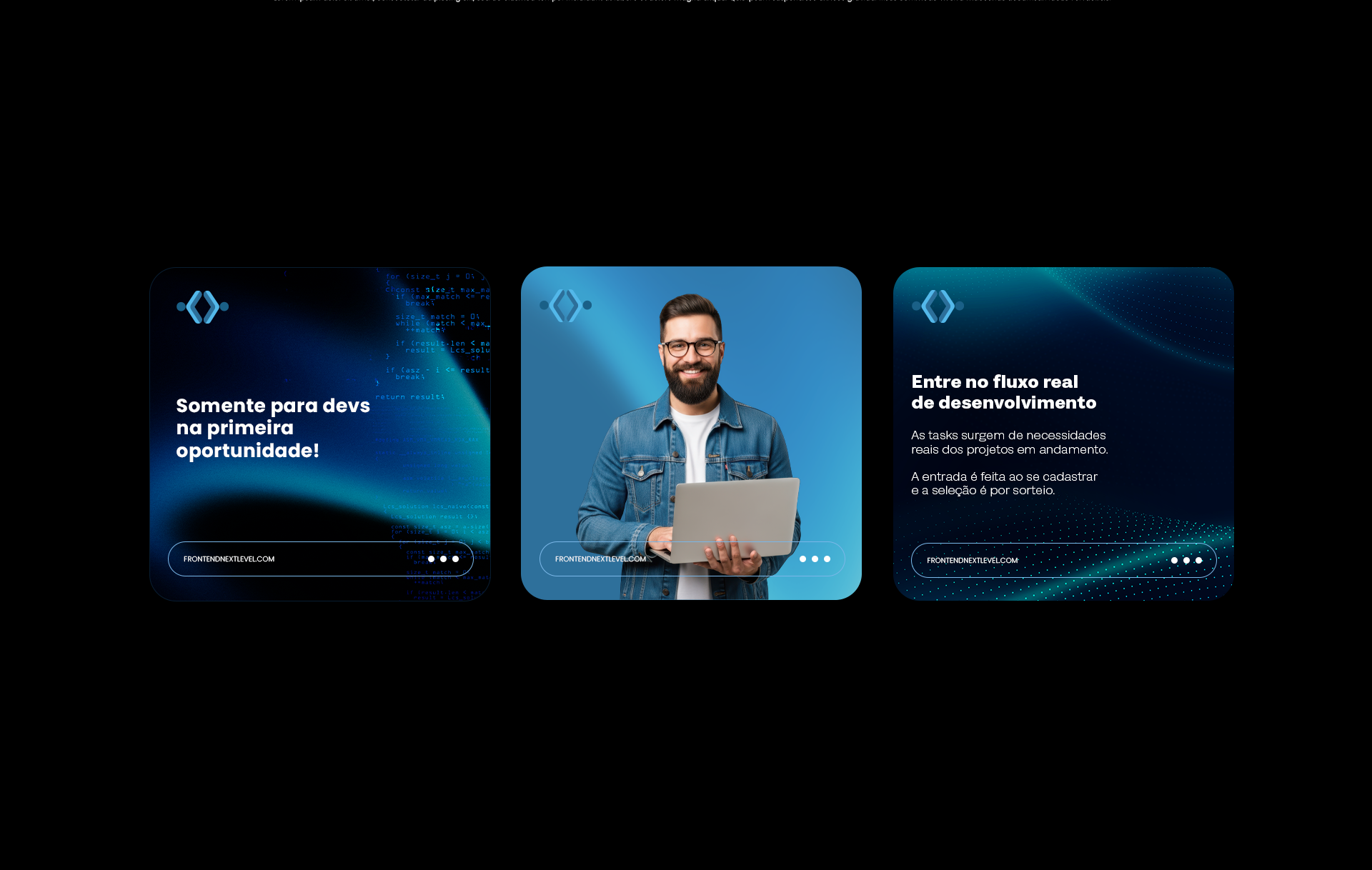 O projeto de identidade visual para o Frontend Nextlevel nasce da interseção entre lógica e colaboração, dois pilares fundamentais no desenvolvimento front-end contemporâneo. A construção do logo parte de um símbolo que dialoga diretamente com o universo da programação, utilizando setas inspiradas na sintaxe de código, ao mesmo tempo em que sugere um gesto humano, quase como dois braços que se encontram em um aperto de mãos. Essa dualidade traduz a essência do projeto, onde tecnologia e interação caminham juntas de forma inseparável.